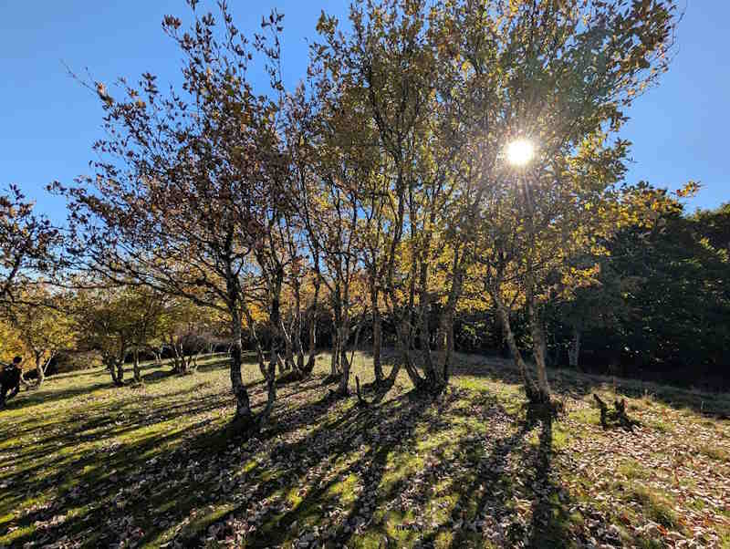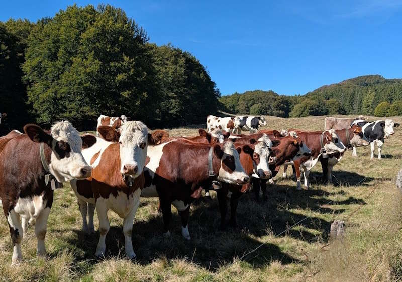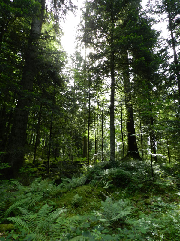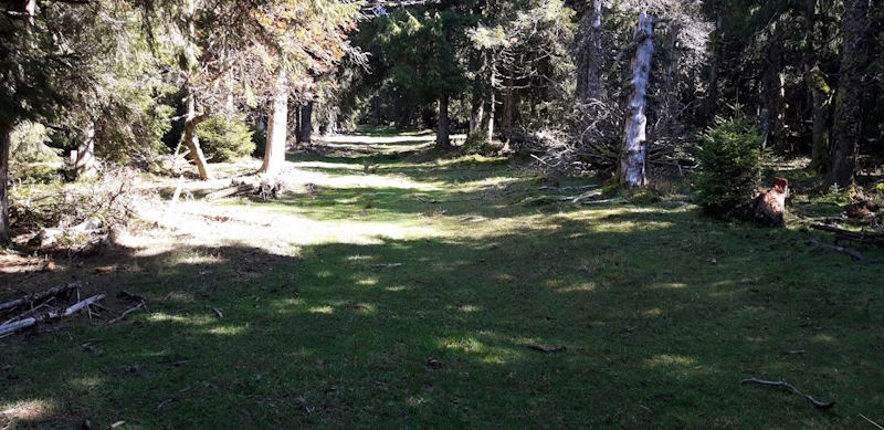 Nous redescendons par le même sentier si pentu et bifurquons en direction de la cabane de Pailla. Nous continuons dans une belle forêt puis suivons un sentier à flanc de montagne.