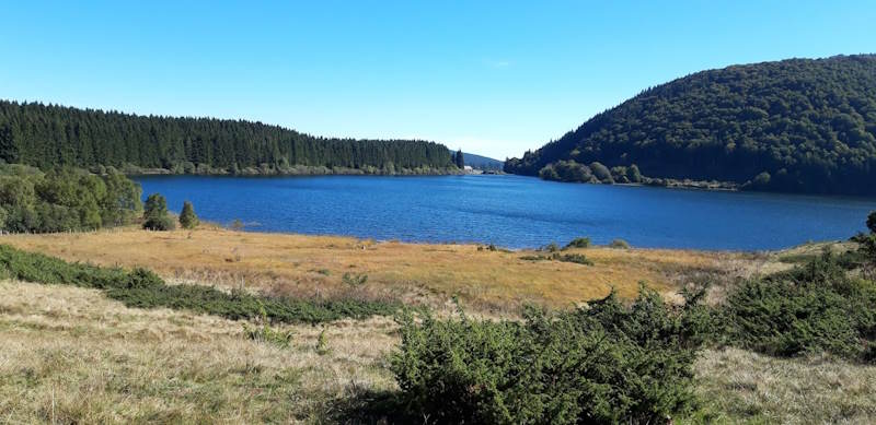 A partir du parking, nous montons de larges et hautes marches naturelles et bifurquons vers le lac des Huats. Itinéraire discret, où nous ne rencontrons plus personne.