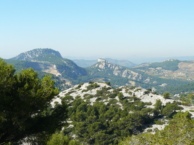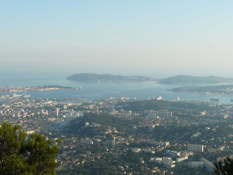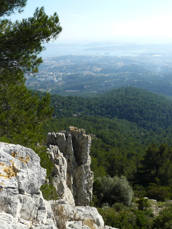 On continue en direction des bornes-limites Evenos-Ollioules et on arrive à 13 heures au sommet du Croupatier pour le pique-nique face à la rade de Toulon.