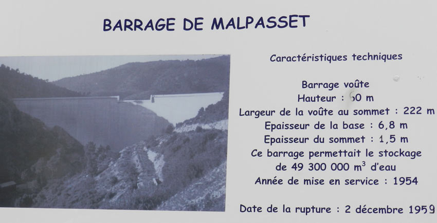 Du fait du chantier de construction de l'autoroute A8, il est de plus demandé de ne pas ouvrir les vannes car les piles du pont sur le Reyran viennent d'être coulées. Le 2 décembre vers 18h, les reponsables de l'ouvrage décident d'ouvrir malgré tout un peu les vannes du barrage. Vers 21h, le gardien du barrage entend, depuis sa maison située à 2,5 km de là, de sinistres craquements. A 21h13 exactement, le barrage cède, libérant en une monstrueuse vague de 40 mètres de haut, les 50 millions de m3 d'eau qu'il retenait. La vague déferle à 70 km/h et 20mn plus tard, elle atteint la ville de Fréjus.