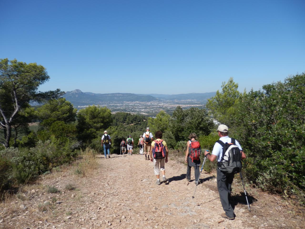 Le Mont des Oiseaux a une altitude modeste mais au départ de Carqueiranne, il nous faut d'abord monter au Paradis, puis redescendre sur des pentes raides - le profil est éloquent - sous un soleil bien agréable pour sa lumière qui illumine les paysages mais éprouvant pour sa chaleur.