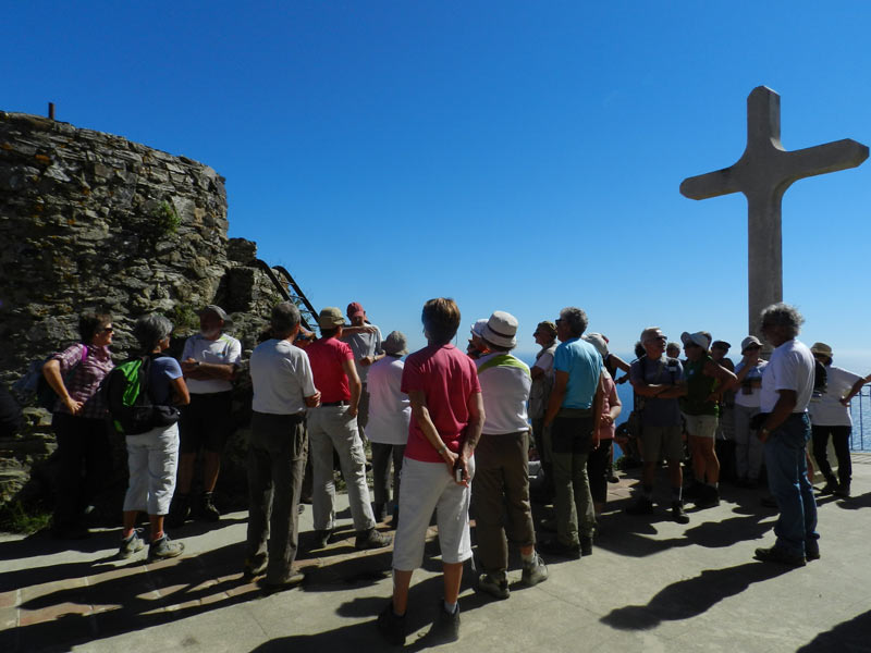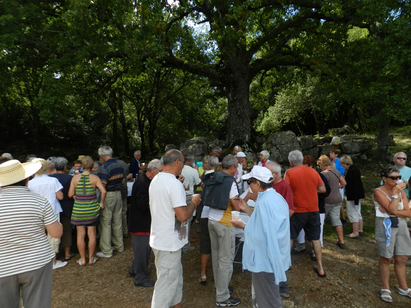 Nous nous retrouvons, après avoir bien monté, à la chapelle de Notre Dame du Mai. Le temps est clair et la vue est superbe. Après le pique-nique Daniel nous fait une lecture du paysage. Il y joint quelques anecdotes du temps jadis que nous connaissons bien, mais qui ravissent les Nieulais.