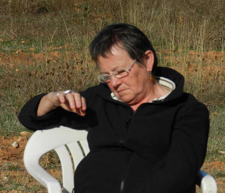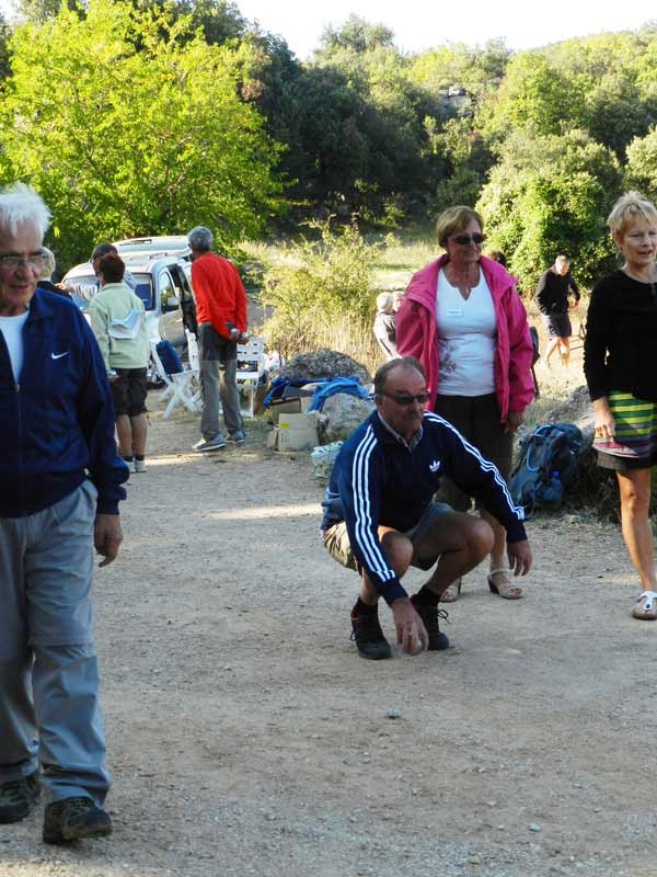 Cet excellent repas terminé, les joueurs de boules se mettent en place pendant que d'autres bavardent au soleil ou font la sieste; et les plus coquettes se remaquillent!