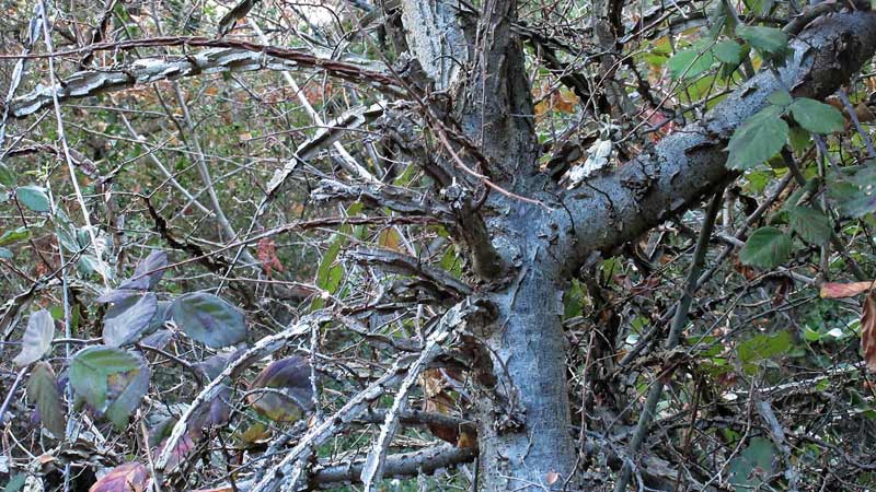 Roland nous montre un orme champêtre avec son bois qui produit un liège; il reste quelques feuilles et l'on peut remarquer leur asymétrie. Merci Roland de nous instruire et de consolider nos mémoires défaillantes.