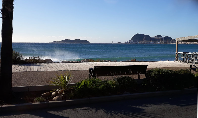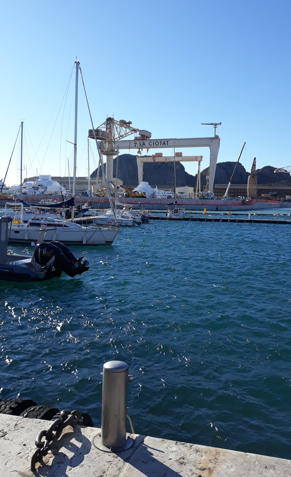 Ce ne sont pas des conditions idéales pour faire, comme il était programmé, la traversée de la rade de Toulon en bateau-navette. Nous faisons donc une rando plus calme à La Ciotat du quartier St Jean jusqu’au Mugel. C’est une rando urbaine facile.