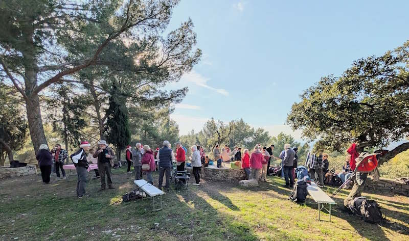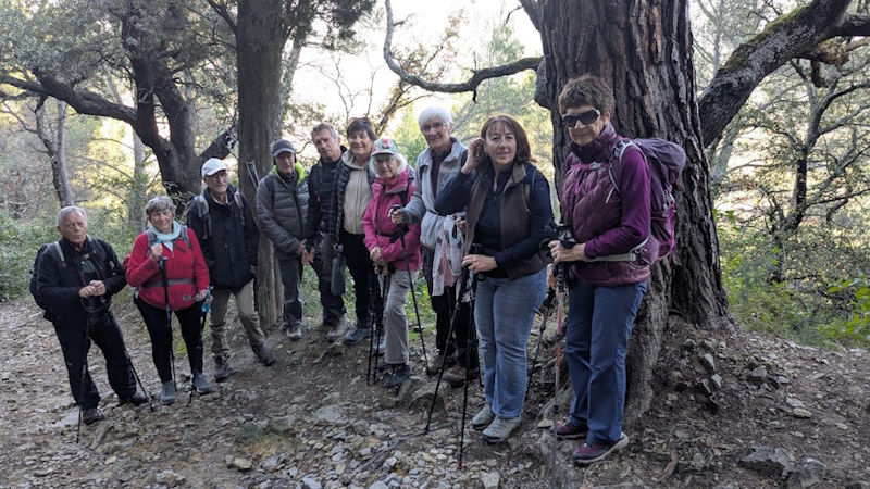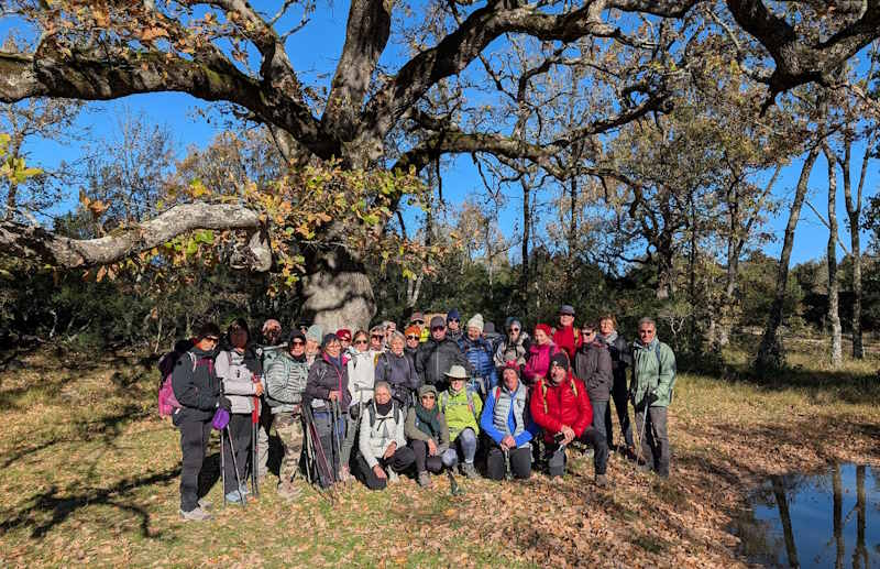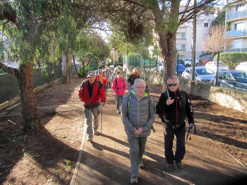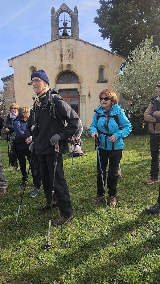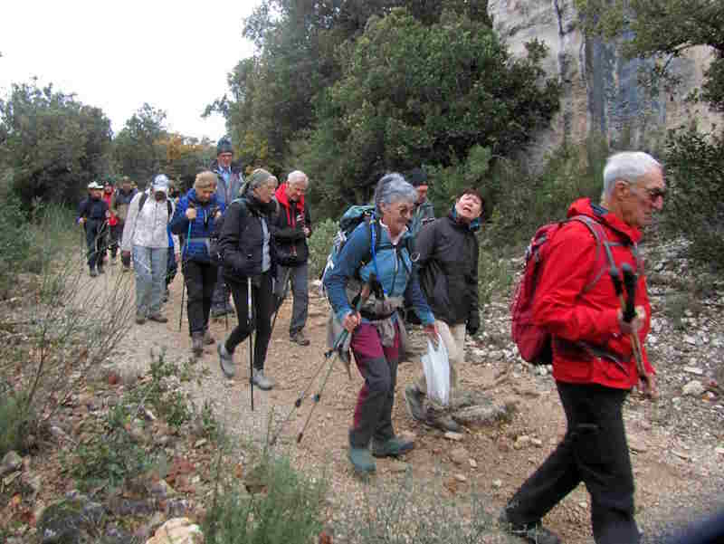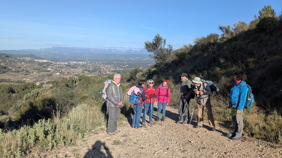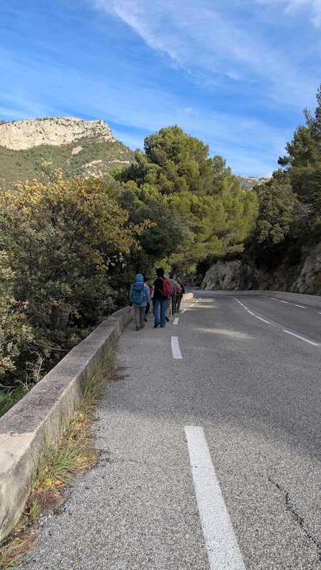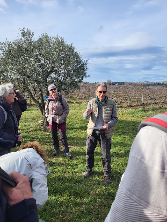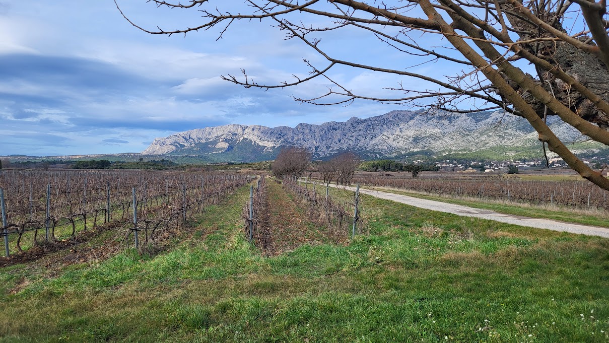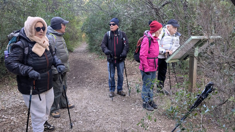 Tous à l’heure, nous sommes 31 réunis sur le parking d’Eden Forme où le covoiturage se forme. Un peu plus d’une heure plus tard et sans embouteillage, nous stationnons nos véhicules dans le centre de Puyloubier avant de nous diriger dans la campagne aixoise. Un beau soleil qui arrive à traverser les nuages nous réchauffe très vite et les discussions vont bon train puisque nous cheminons sans aucun dénivelé sur des chemins quelquefois boueux et parsemés ici et là de petites flaques d’eau.