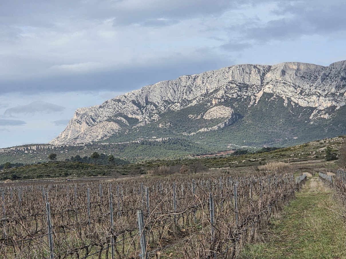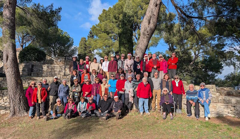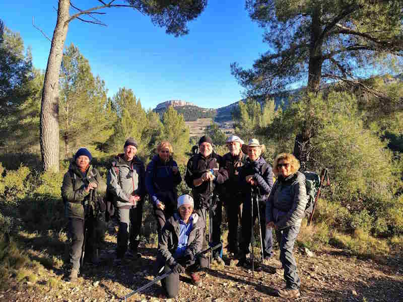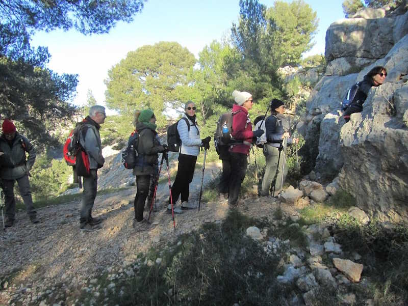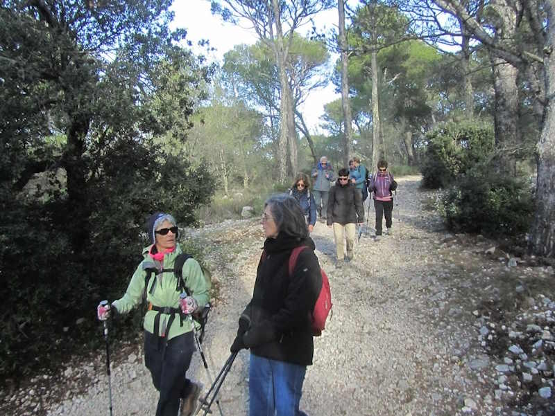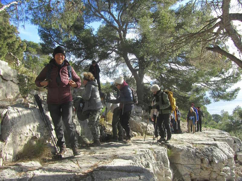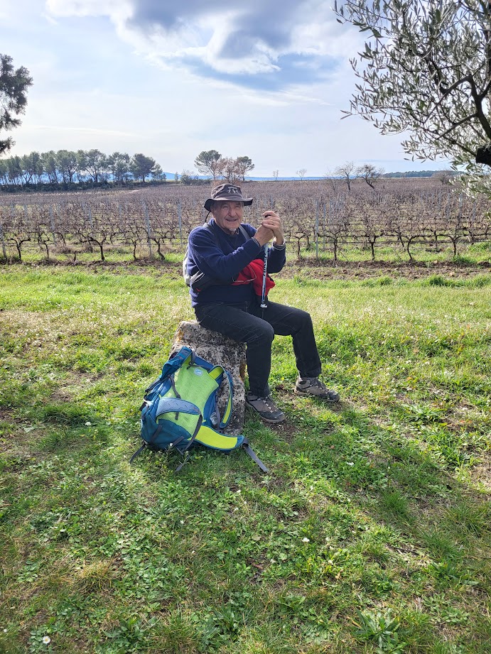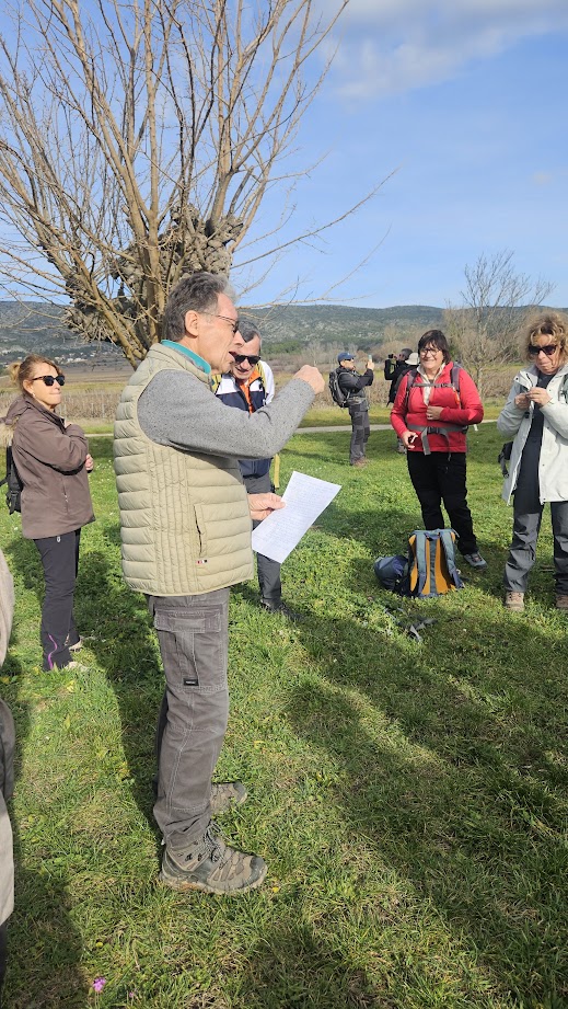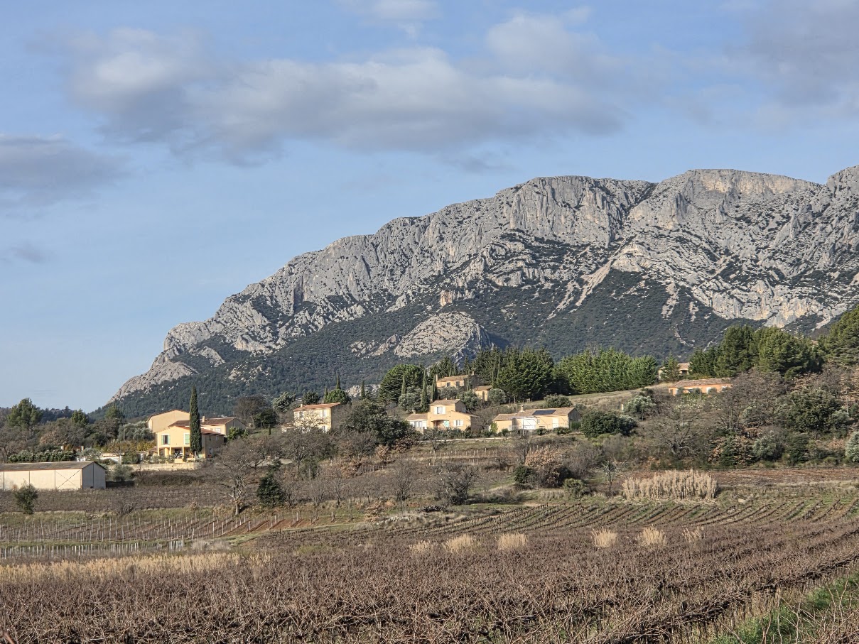Tous à l’heure, nous sommes 31 réunis sur le parking d’Eden Forme où le covoiturage se forme. Un peu plus d’une heure plus tard et sans embouteillage, nous stationnons nos véhicules dans le centre de Puyloubier avant de nous diriger dans la campagne aixoise. Un beau soleil qui arrive à traverser les nuages nous réchauffe très vite et les discussions vont bon train puisque nous cheminons sans aucun dénivelé sur des chemins quelquefois boueux et parsemés ici et là de petites flaques d’eau.