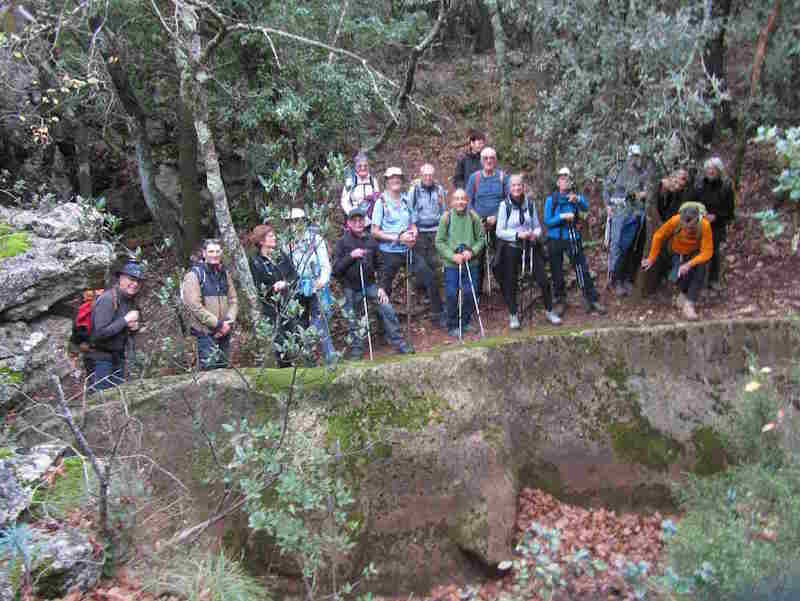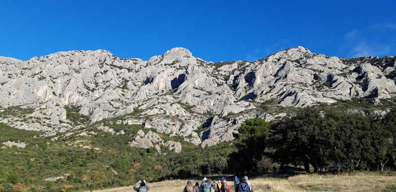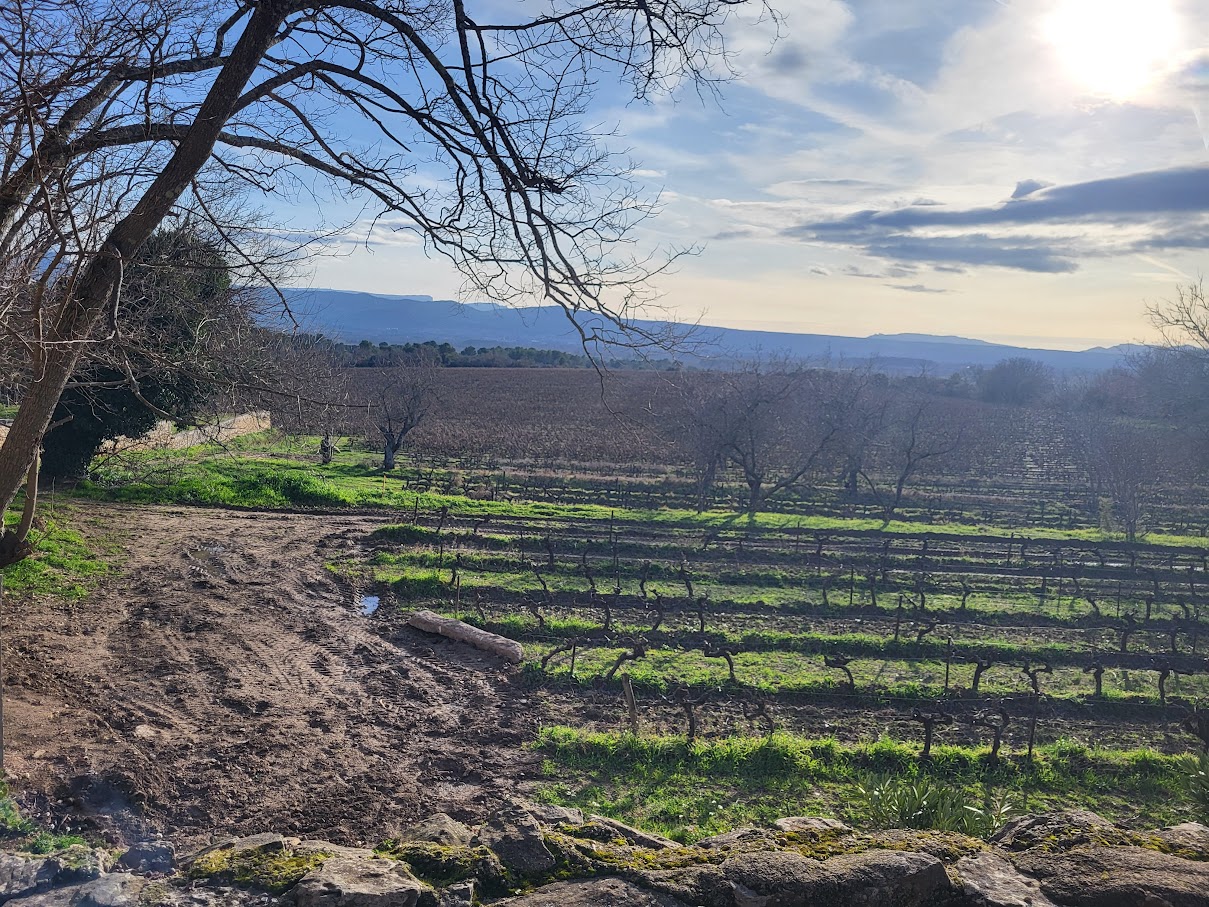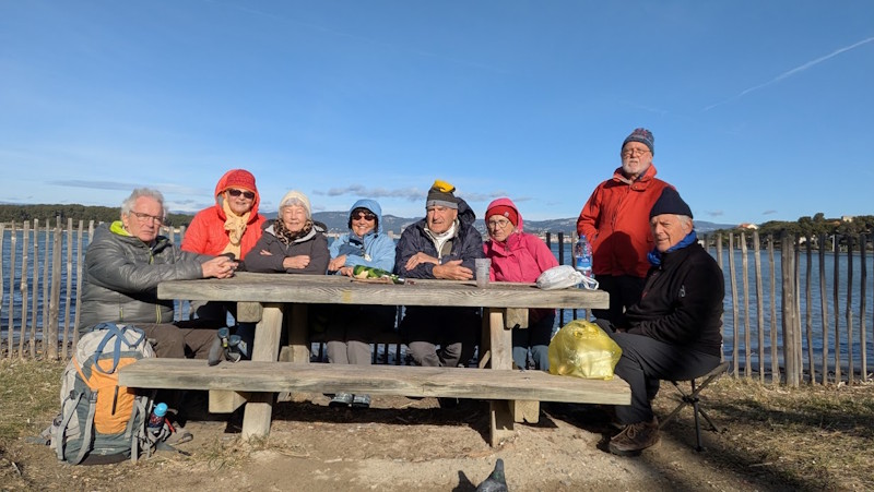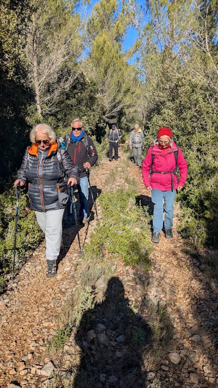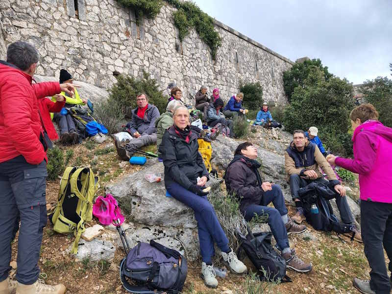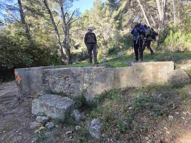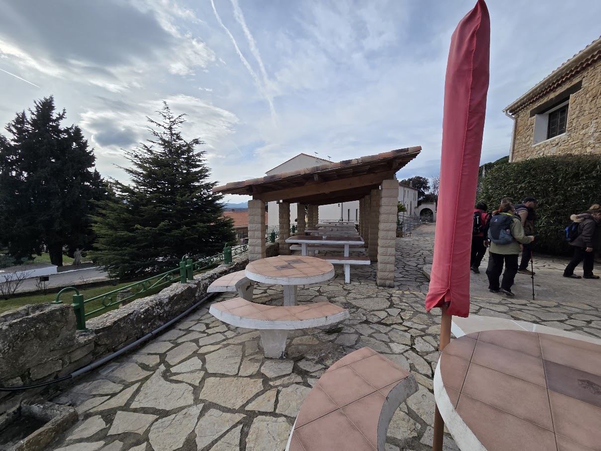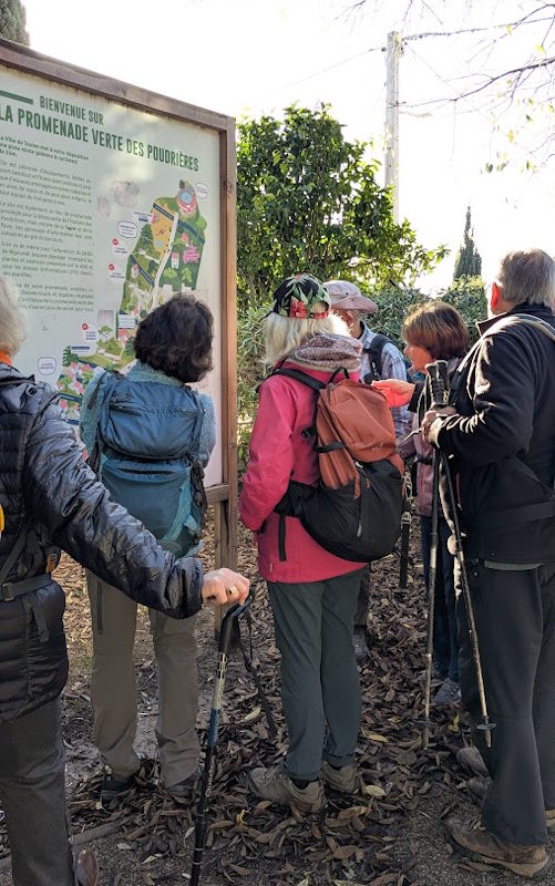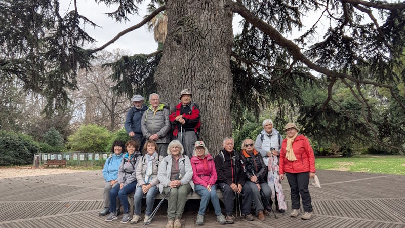 Tous à l’heure, nous sommes 31 réunis sur le parking d’Eden Forme où le covoiturage se forme. Un peu plus d’une heure plus tard et sans embouteillage, nous stationnons nos véhicules dans le centre de Puyloubier avant de nous diriger dans la campagne aixoise. Un beau soleil qui arrive à traverser les nuages nous réchauffe très vite et les discussions vont bon train puisque nous cheminons sans aucun dénivelé sur des chemins quelquefois boueux et parsemés ici et là de petites flaques d’eau.