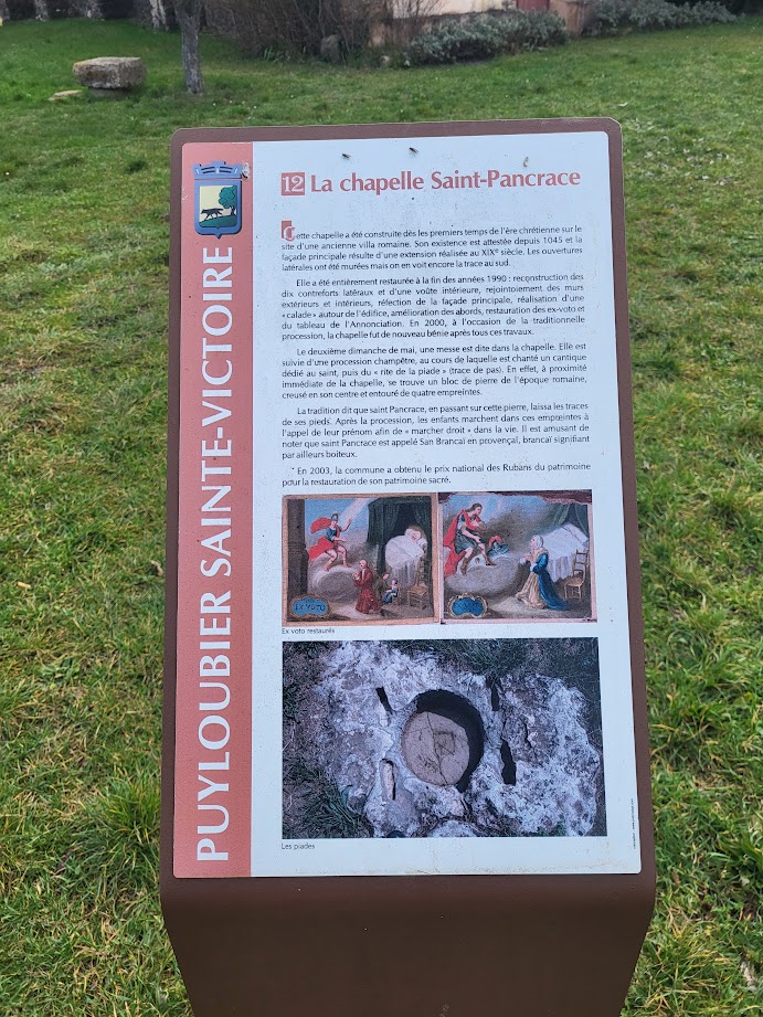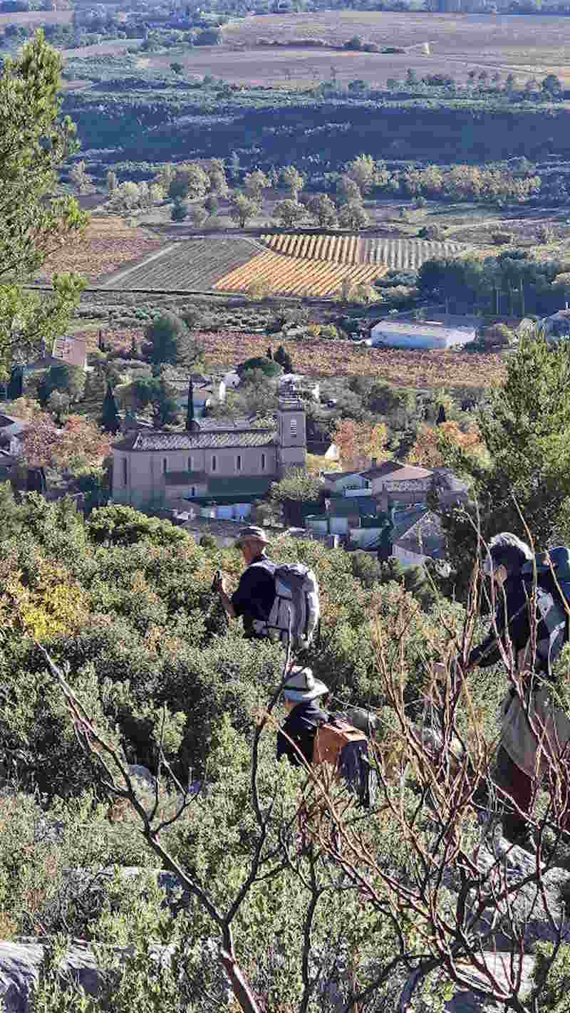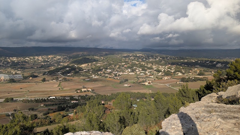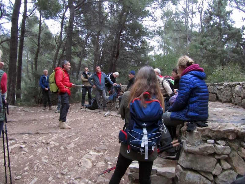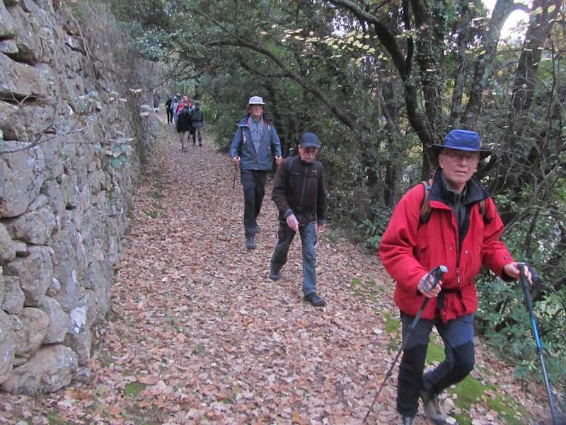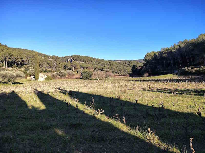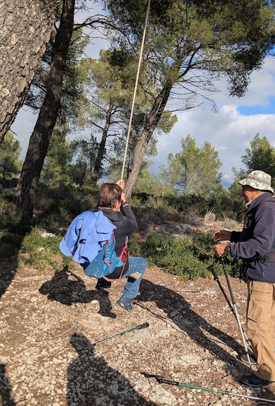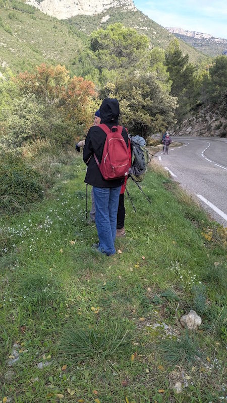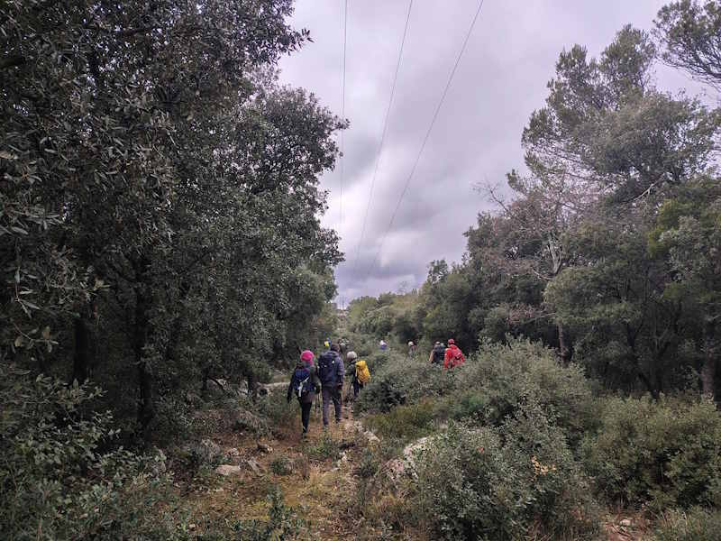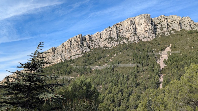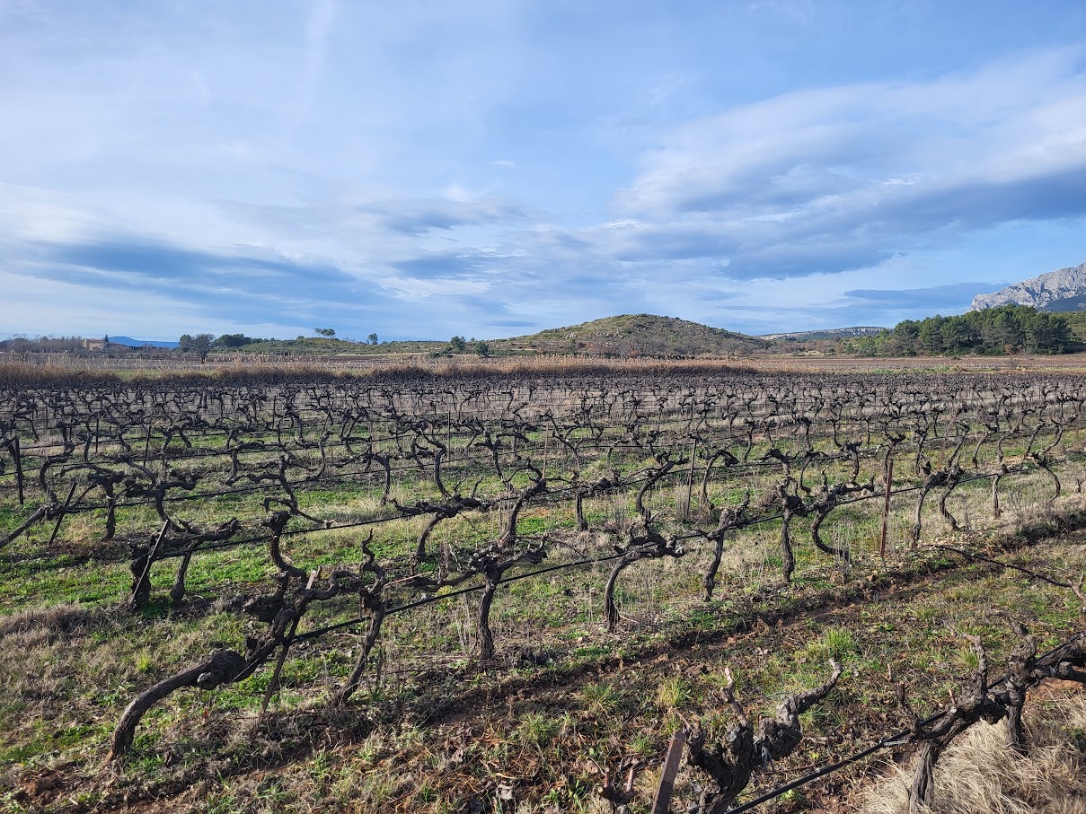 Tous à l’heure, nous sommes 31 réunis sur le parking d’Eden Forme où le covoiturage se forme. Un peu plus d’une heure plus tard et sans embouteillage, nous stationnons nos véhicules dans le centre de Puyloubier avant de nous diriger dans la campagne aixoise. Un beau soleil qui arrive à traverser les nuages nous réchauffe très vite et les discussions vont bon train puisque nous cheminons sans aucun dénivelé sur des chemins quelquefois boueux et parsemés ici et là de petites flaques d’eau.