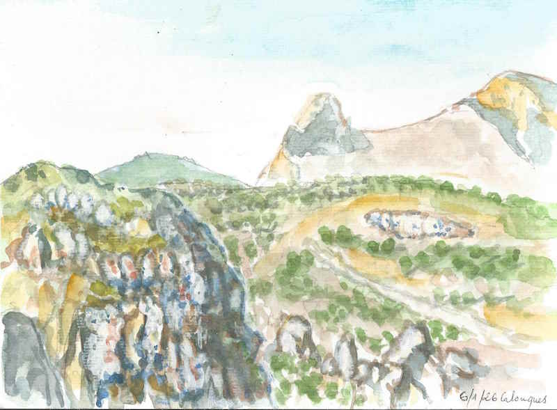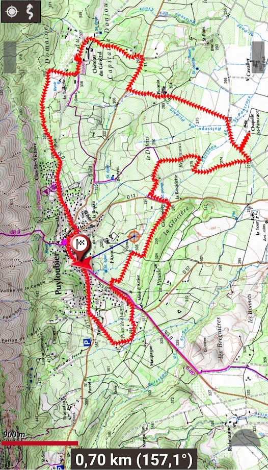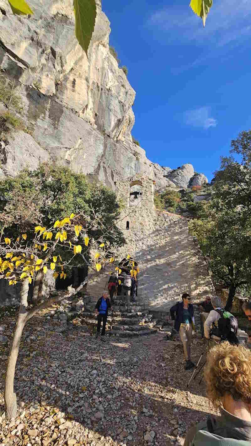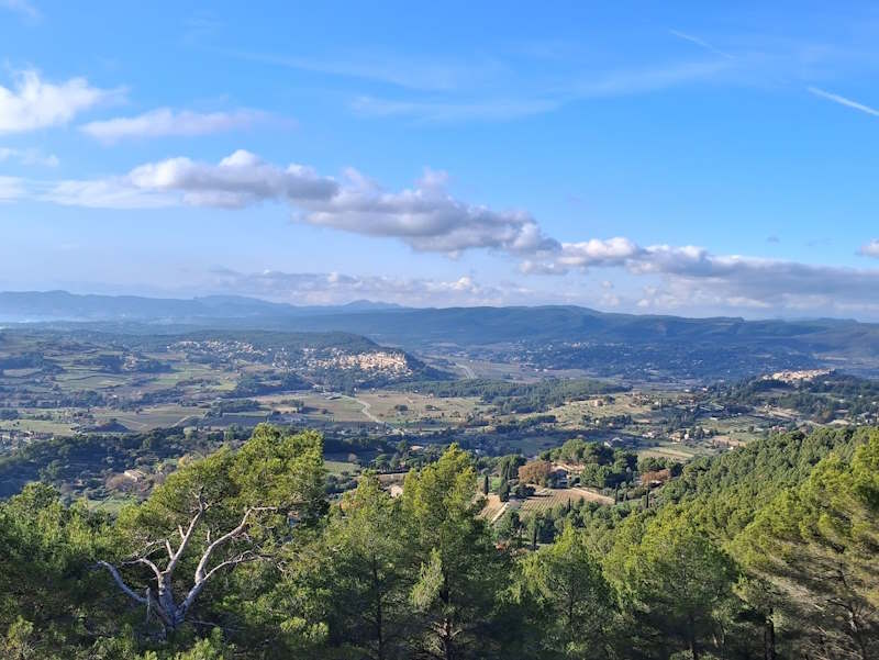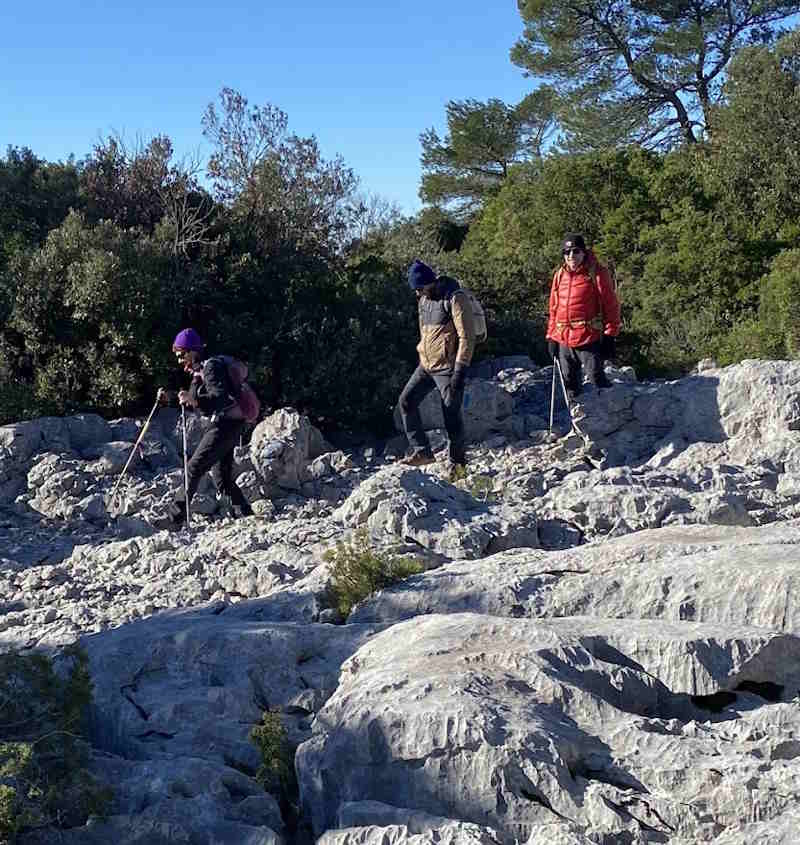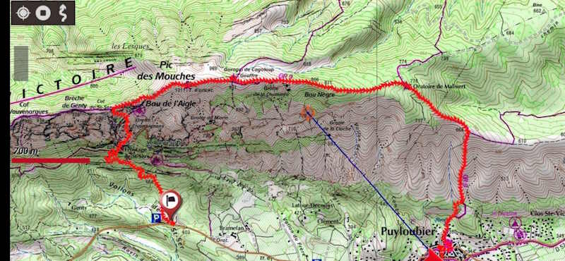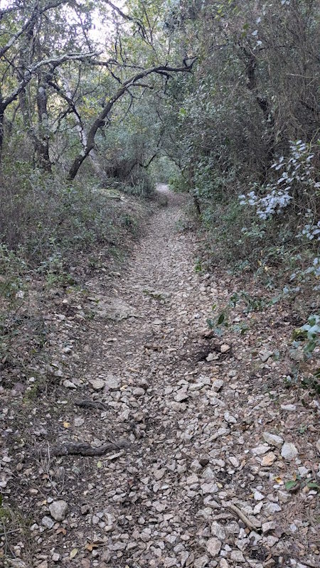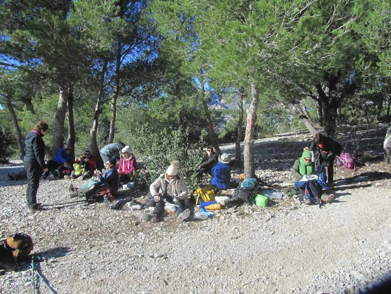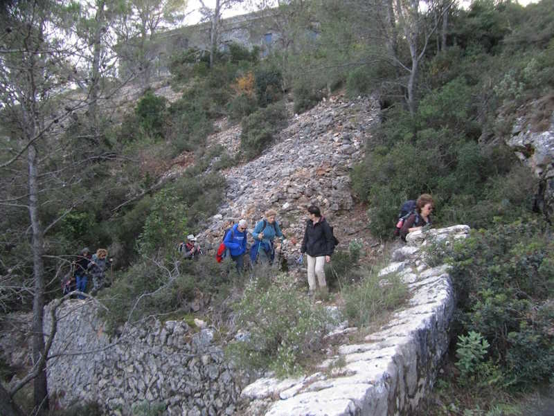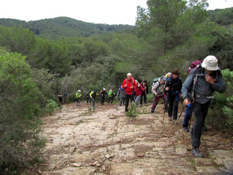 Tous à l’heure, nous sommes 31 réunis sur le parking d’Eden Forme où le covoiturage se forme. Un peu plus d’une heure plus tard et sans embouteillage, nous stationnons nos véhicules dans le centre de Puyloubier avant de nous diriger dans la campagne aixoise. Un beau soleil qui arrive à traverser les nuages nous réchauffe très vite et les discussions vont bon train puisque nous cheminons sans aucun dénivelé sur des chemins quelquefois boueux et parsemés ici et là de petites flaques d’eau.