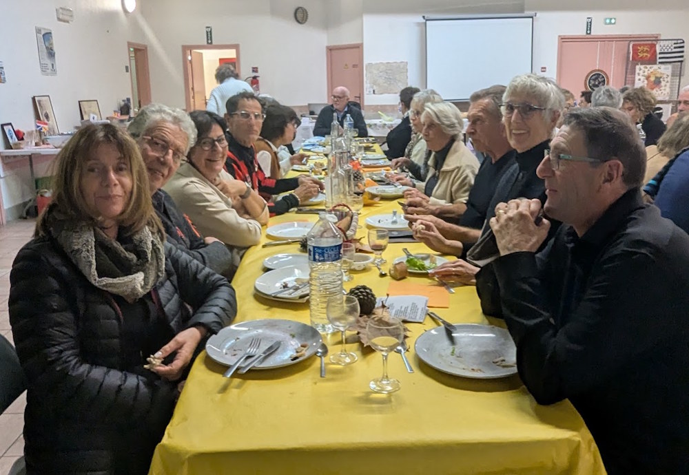 Vers 12h30 et à la place du piquenique traditionnel, nous voici tous à table dans la grande salle à manger de l’Institution des Invalides de la Légion Etrangère pour y déguster un déjeuner très convivial.